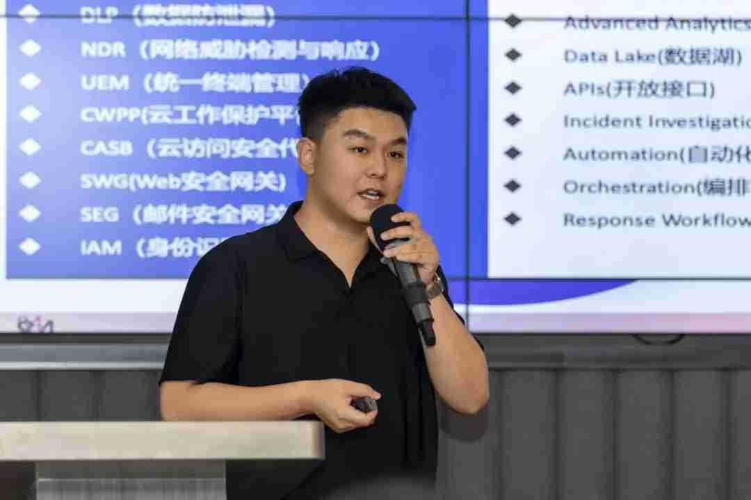 最后,,,山石网科售前工程师郑翔天就以XDR云网边端构建全域融合的安全运营新防线主题进行了分享。。。。他深入剖析了当前网络安全形势下,,企业面临的挑战和需求,,,,详细介绍了山石网科XDR解决方案的核心优势,,包括多数据源管理、、、多视角安全事件呈现、、、、以及自动化协同响应等,,,为与会者展示了山石网科在安全领域的创新能力和专业服务。。。